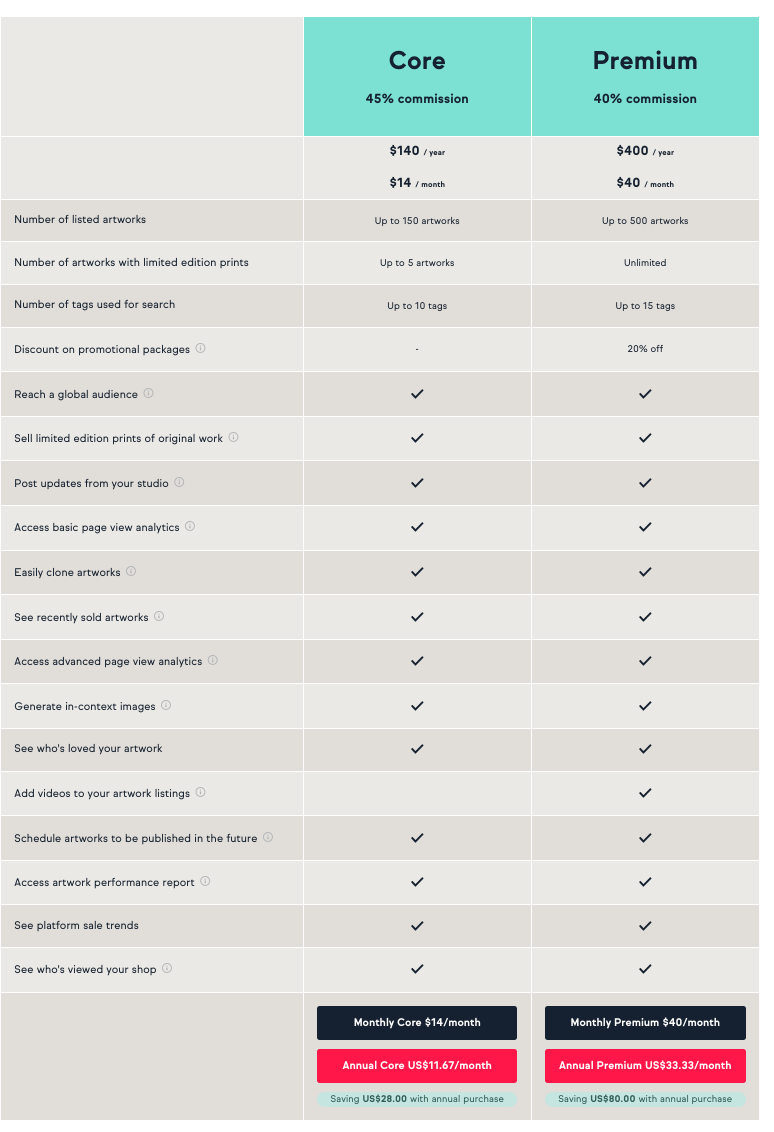 ****Artists on Premium will get access to discount codes for third party services via the artist newsletter, or may contact us at sellers@artfinder.com to obtain their discount. More info will be posted soon on each set of benefits.