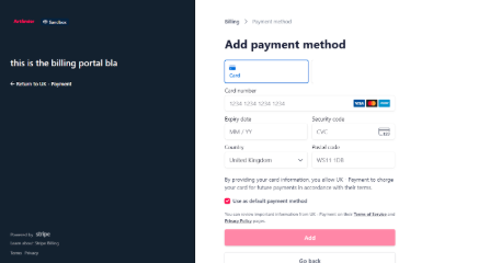 Once you click on ‘Manage Billing’ it will take you to a new secure window hosted by Stripe, our trusted partner who processes all card payments.